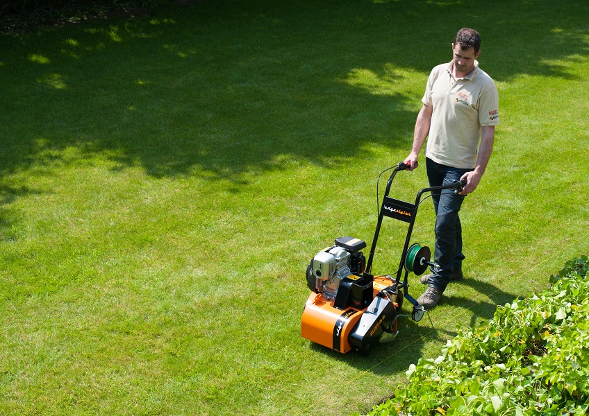 Prawidłowo umiejscowiony przewód niskiego napięcia bedzie bezpieczny nawet podczas wykonywania wertykulacji trawnika maszyną spalinową.