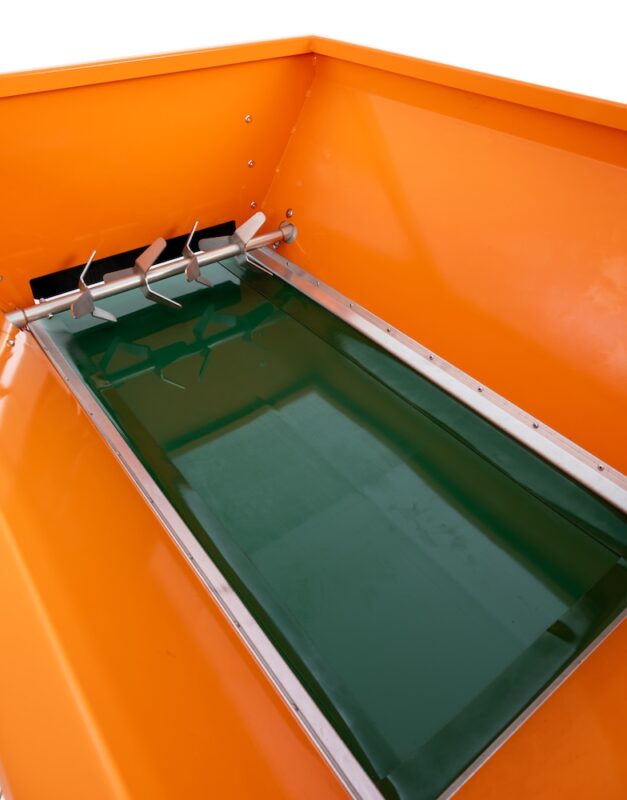 Taśmociąg z młynem mieszającym. Na dnie zbiornika stożkowego biegnie przenośnik taśmowy o szerokości 450 mm, który transportuje materiał pogłówny do urządzenia rozrzucającego. Przenośnik taśmowy jest napędzany hydraulicznie. Przepływ rozrzucanego materiału można regulować zarówno prędkością taśmy, jak i regulowanym otworem pod klapą gilotynową. Tuż przed otworem rozrzucającym obraca się młyn mieszający, który stale spulchnia rozrzucany materiał, zapobiegając jego zbrylaniu i zagęszczaniu.