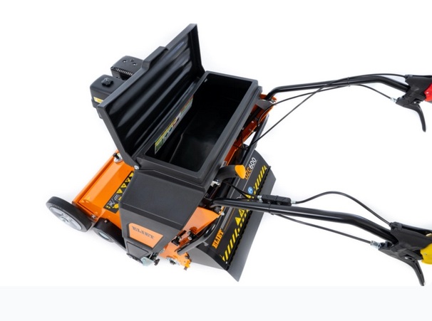 Zbiornik na nasiona. Cechą szczególną siewnika ELIET DZC600 jest to, że zbiornik na nasiona nie wyrzuca ich bezpośrednio, jak w przypadku tradycyjnego siewnika. W siewnikach ELIET zbiornik na nasiona jest asymetryczny, kierując nasiona na bok maszyny, skąd trafiają one do dystrybutora nasion. W pojemniku na nasiona jest wystarczająco dużo miejsca na 15 kg nasion trawy.
